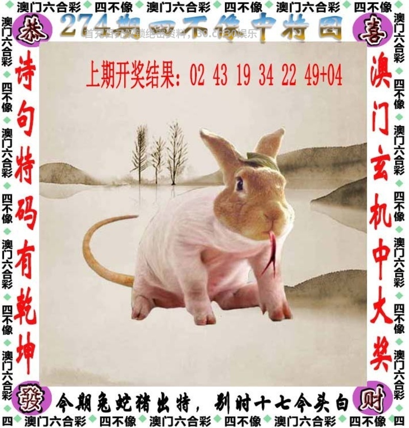 274期:今期兔蛇猪出特,别时十七今头白开:狗44准 ①图解特肖兔蛇猪狗鼠 ②合双+大数 |